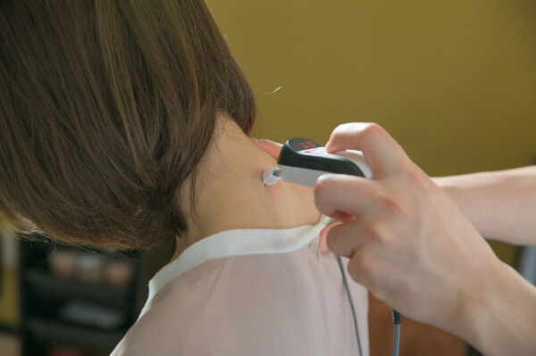 ピリピリまたは深部に響くと感じる程度で、刺激の強さもお一人おひとりに合わせて細かく調整できますのでご安心ください。