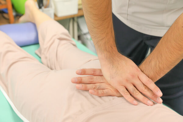 ゆがみによって過度に緊張し、硬くなってしまった筋肉に対し、マッサージやストレッチを含むソフトな手技でアプローチします。